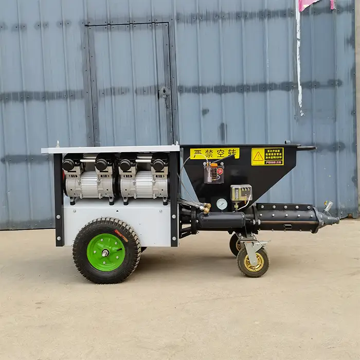 This machine is ideal for spraying cement mortar on buildings, plastering, putty applications, and is useful for both residential and commercial projects.