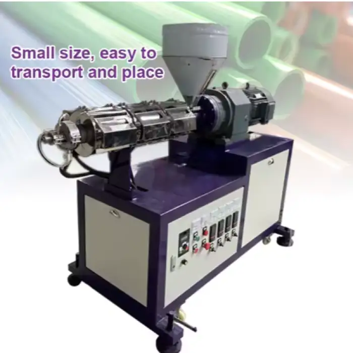 The mini plastic extruder can process a variety of plastics including PE, PP, PVC, ABS, Polystyrene, PA, EVA, FRPP/PVC, and HDPE.