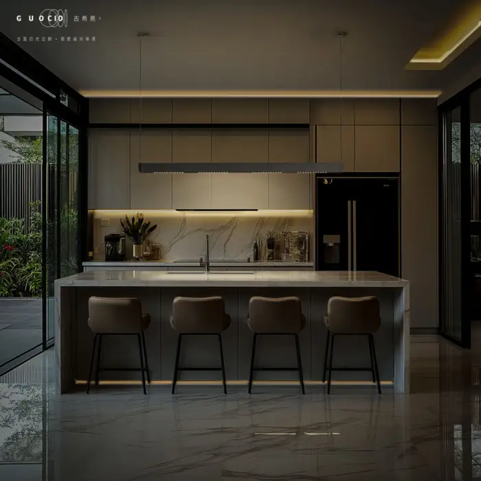 Yes — the design and output are intended for living rooms, kitchen islands, reception desks, dining areas, art galleries and similar indoor spaces.