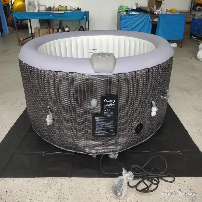 The spa tub is made from durable PVC Polyfabric 3-Ply material.