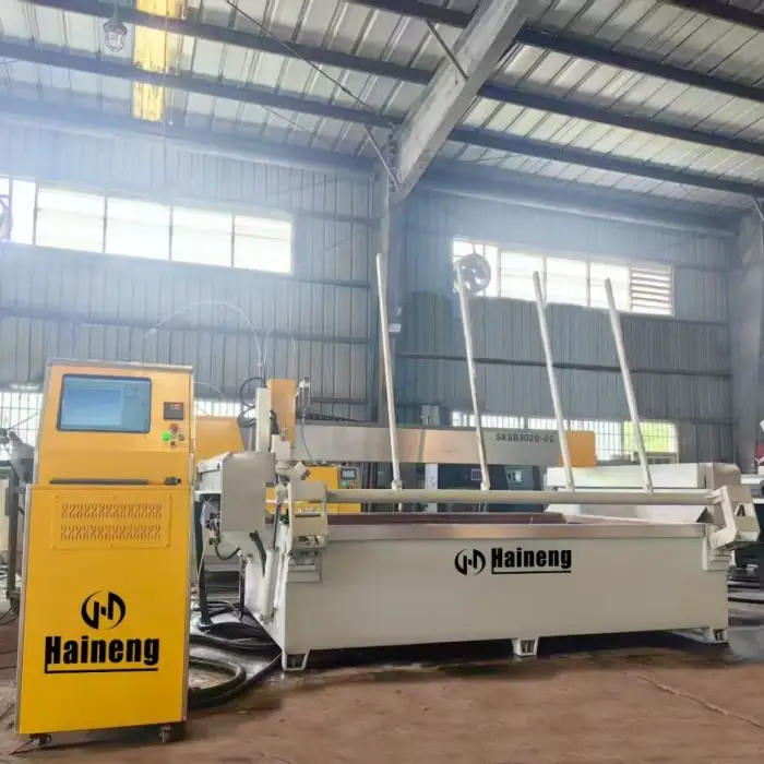 The machine utilizes an advanced CNC control system for precision cutting.