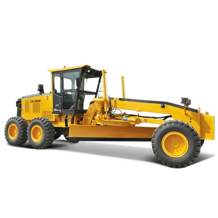 This motor grader is suitable for road construction, land leveling, site preparation, snow removal, and excavation tasks.