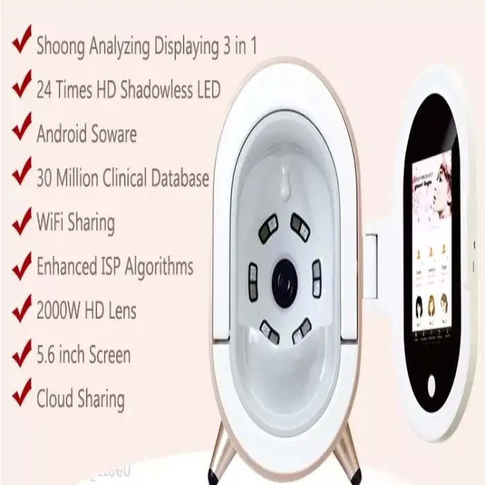 The device features a high-definition camera that can connect via WiFi or USB for capturing detailed skin images.