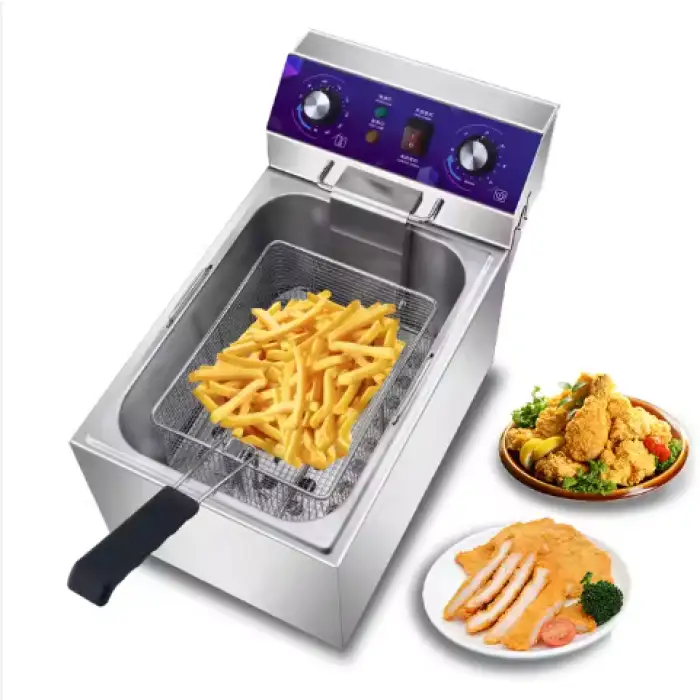 The fryer has a power rating of 3KW, which allows for rapid cooking and efficient frying.