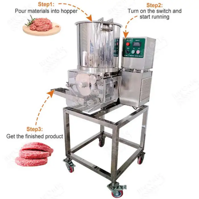 It is a fully automatic machine designed to produce chicken nuggets and burger patties quickly and consistently. It's suitable for restaurants, food trucks, catering services, and food processing plants focused on high-volume meat preparation.