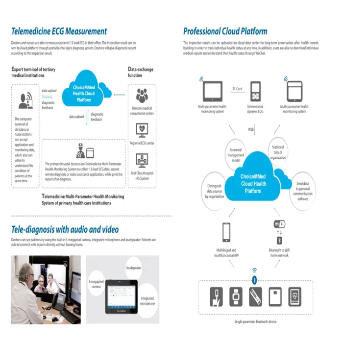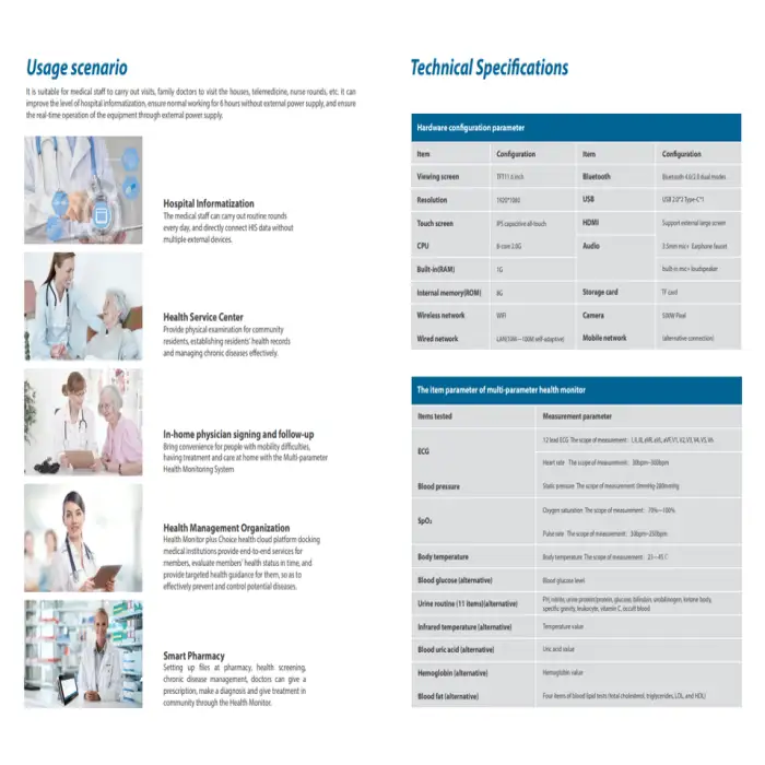 The device can measure SPO2, heart rate, blood pressure, temperature, and 12-lead ECG.