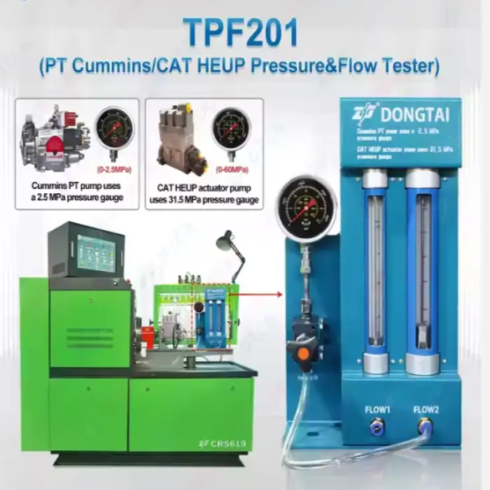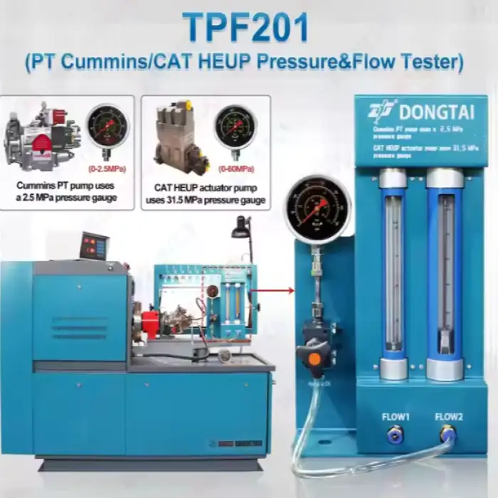 The TPF201 is suited to testing mechanical pumps, hydraulic components, and flow/pressure systems in industrial, R&D, repair shop, and manufacturing quality control environments.