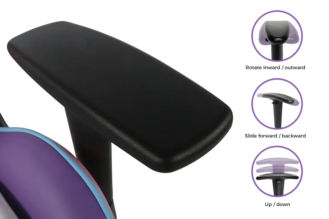 The full-metal 4D armrests can be adjusted in multiple directions—typically height, forward/back, lateral (side-to-side) and angle/rotation—so you can find an ergonomic forearm resting position. The armrests have a metal internal structure with PU padding for durability and easy maintenance.