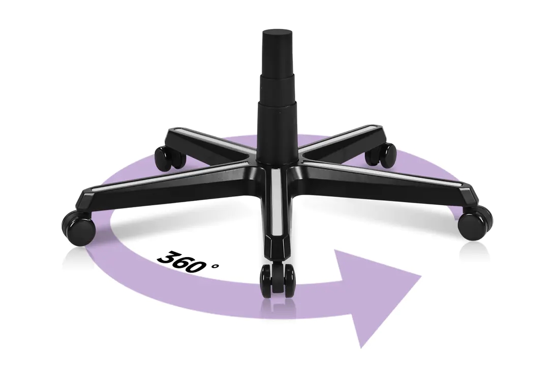 It has a robust aluminum base resistant to external forces, paired with heavy-duty aluminum casters that are designed to glide smoothly across most floor surfaces.