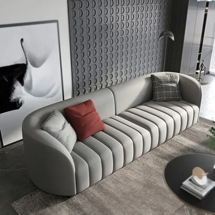 The PU Leather Nordic Set Furniture is crafted from high-quality PU leather, top grain leather, and new tech fabric, ensuring durability and luxury.