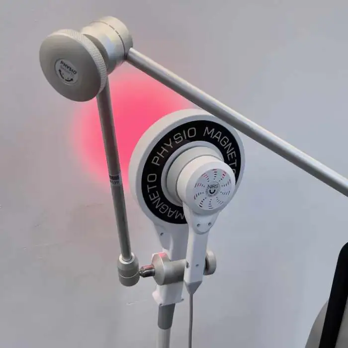 A Class I medical physiotherapy device (Genwave PMST-3 NEO) designed for physiotherapy, pain relief and body massage to support recovery and wellness in home or clinical settings.