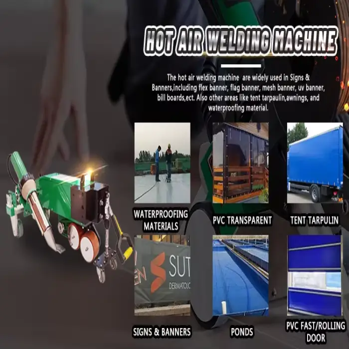The machine is perfect for waterproofing PVC membrane roofs, making pool liners, constructing tarpaulins, and various industrial applications.
