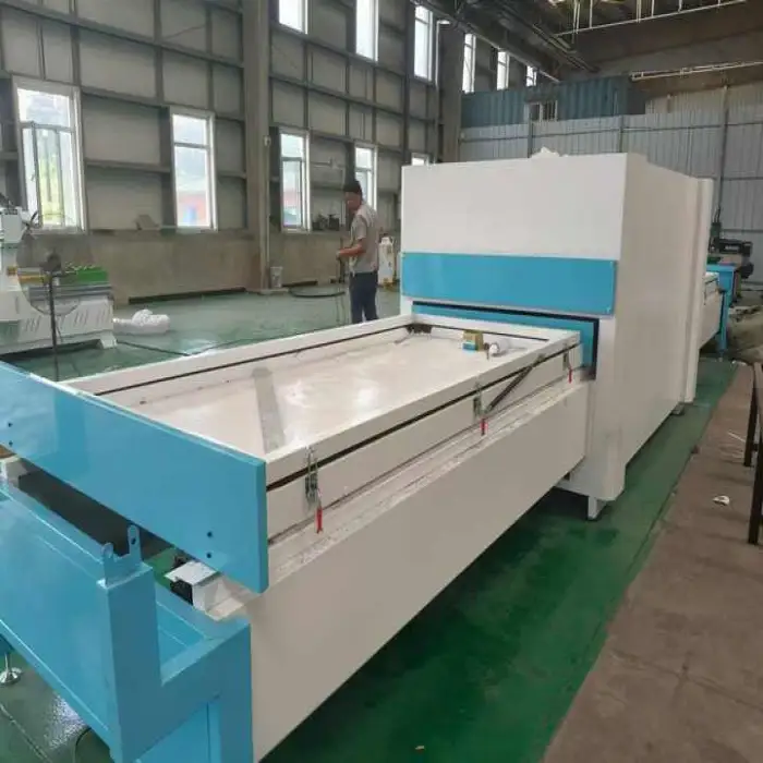 The PVC Thermoforming Door Laminating Machine has a working size of 2550 x 1100 x 50 mm.