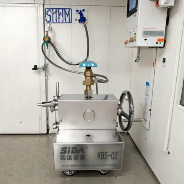 The QDMECH Dry Ice Maker can produce between 10 to 15 kg of dry ice per hour.