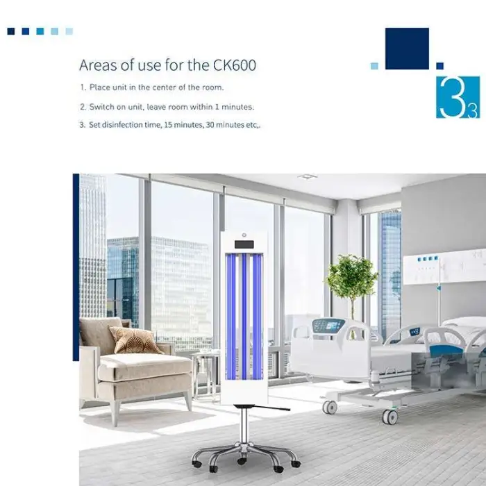 The UVC disinfection process works by emitting ultraviolet light at a wavelength of 253.7 nm, which is effective at destroying the DNA of bacteria and viruses, rendering them harmless.