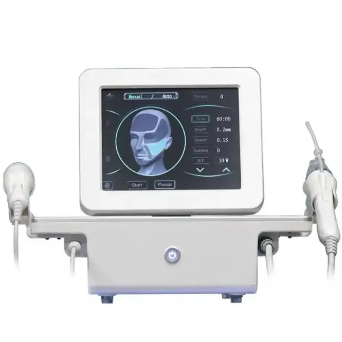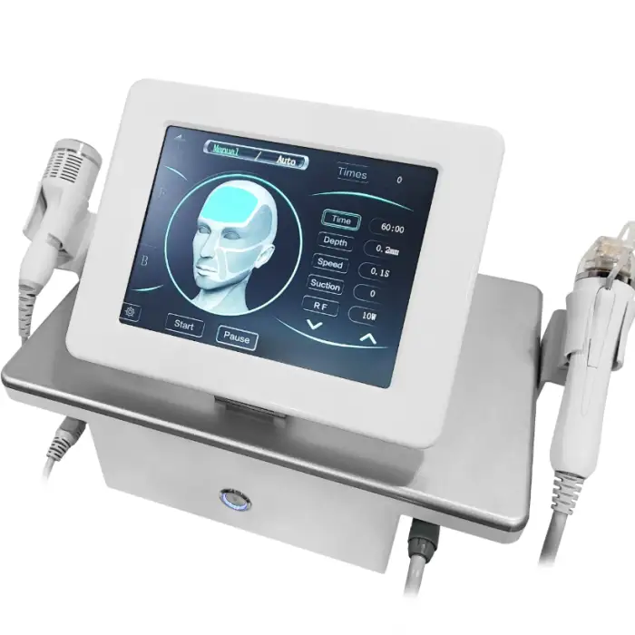 The Radio Frequency Gold Microneedle is a 2 in 1 Microneedle RF Machine designed for skin rejuvenation, wrinkle removal, and face lifting using advanced RF technology and microneedling capabilities.