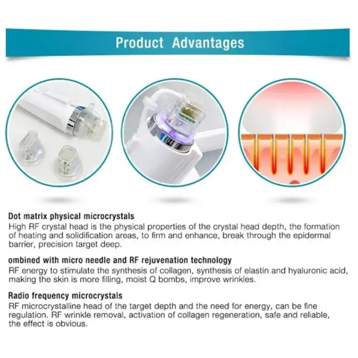 The microneedling creates micro-injuries in the skin, which promotes collagen production, while the RF technology heats the deeper layers of skin to enhance skin tightening and rejuvenation.
