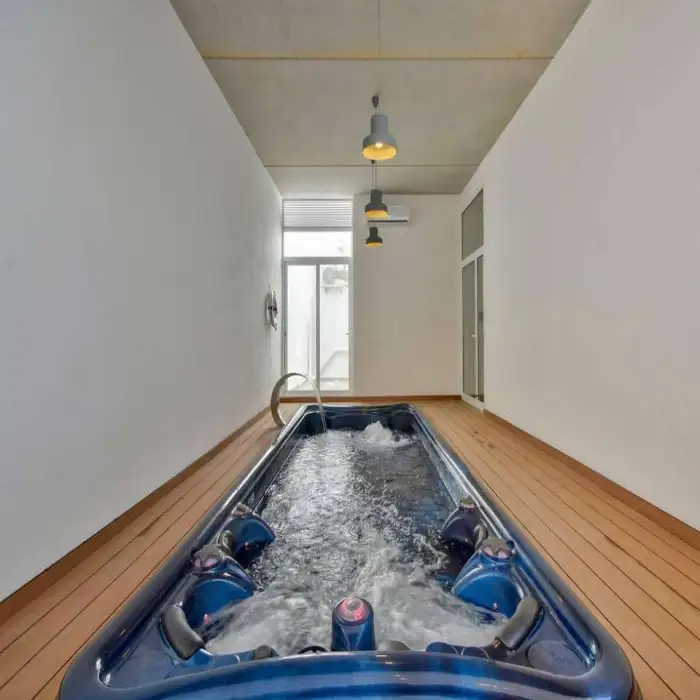 The Rectangular Outdoor Spa Bathtub has a capacity of up to 20 gallons.