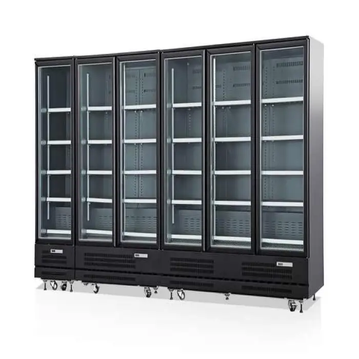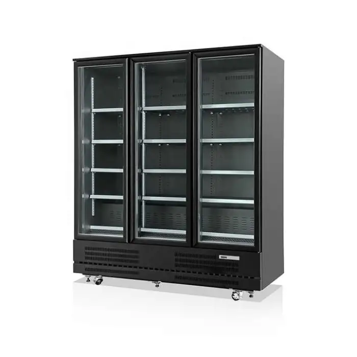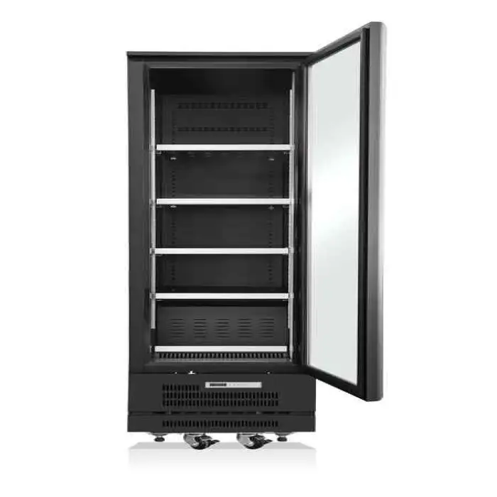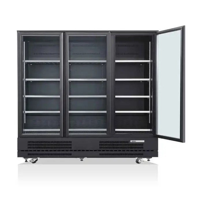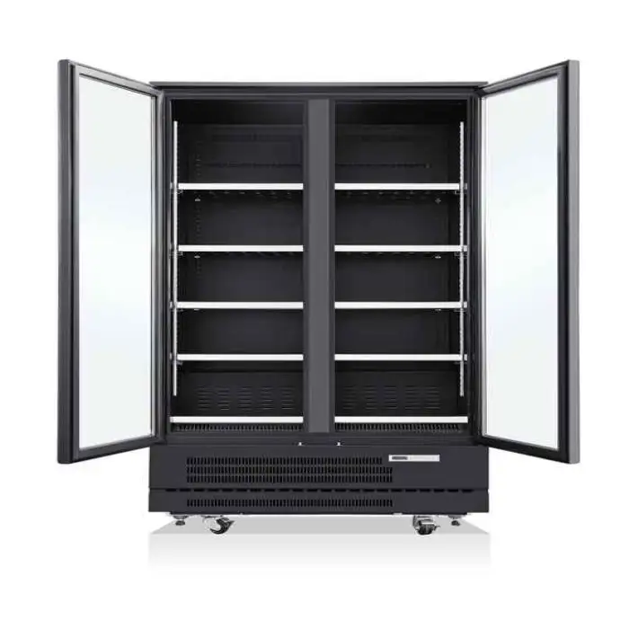 Regular tasks include cleaning glass doors and interior shelving, checking and cleaning condenser coils, inspecting door gaskets for proper seal, and verifying temperature settings. Have a qualified technician perform planned servicing for refrigerant and compressor checks.