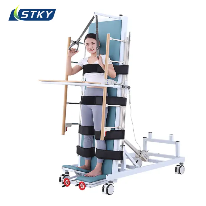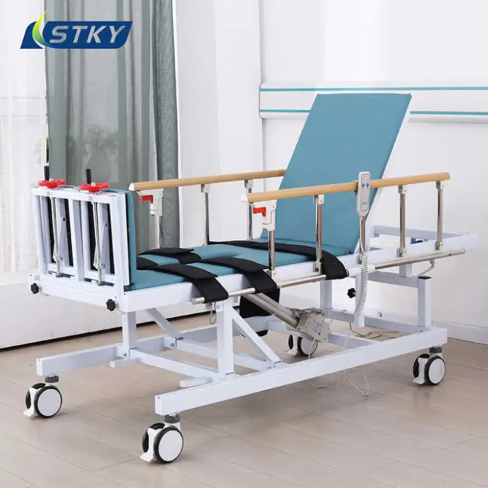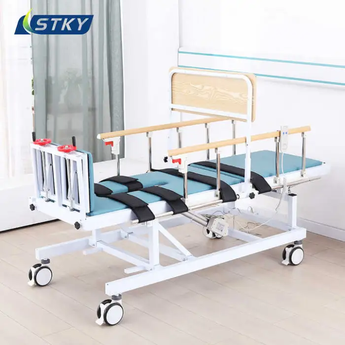 The STKY ST-J021 is an electric tilt hospital/physiotherapy bed designed to support patients during rehabilitation and physiotherapy. It features a durable stainless steel frame and an electric tilt mechanism for easy positioning. It's suitable for hospitals, clinics, rehabilitation centers and home care.