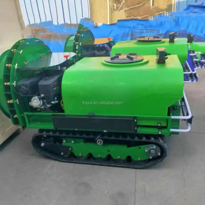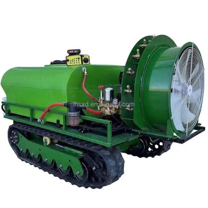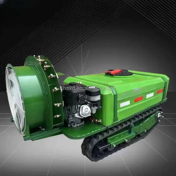 A full-automatic, self-propelled remote-control crawler designed to spray pesticides, fertilizers and disinfectants in orchards and other crop fields. It combines remote operation, automation and a 15 HP engine to increase productivity and reduce manual labor.