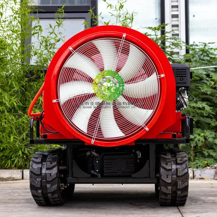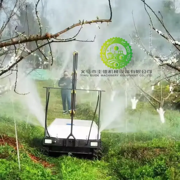 A driverless, remote-controlled crawler sprayer designed for agricultural use in farmland, orchards and gardens. It combines pump-driven spraying with crawler mobility and intelligent/IoT features to enable efficient pest control, fertilization and other spraying tasks.
