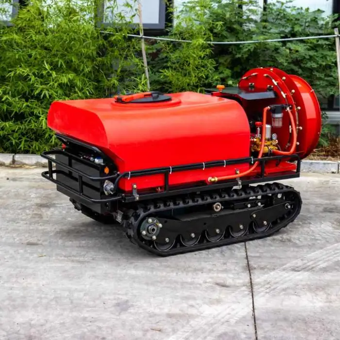 It is an automatic remote-controlled agricultural sprayer designed to disinfect farmland and orchards and to apply pesticides and fertilizers over large areas efficiently, improving crop health and yield.