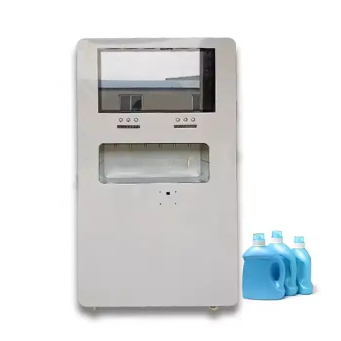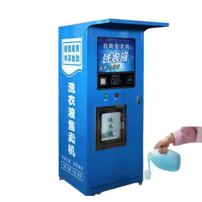 The vending machine has a large capacity that allows it to hold ample liquid soap, making it suitable for high-traffic locations like laundromats and hotels.