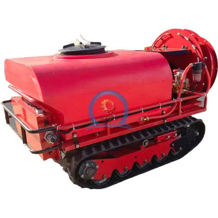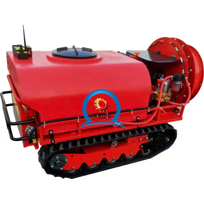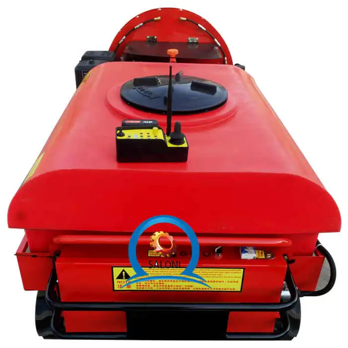 The SALONI SA-YKDYJ-400 is a remote-controlled, wireless robot sprayer designed for orchards, vineyards, nurseries and large gardens. It combines an engine, motor and pump with a 400L water tank and tracked chassis to automate watering, fertilizing and pesticide applications.