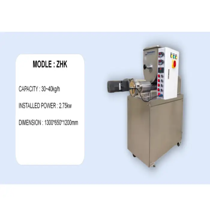 The machine has a production capacity of 40 kg/h, 120 kg/h, or 200 kg/h, making it suitable for both home and restaurant use.