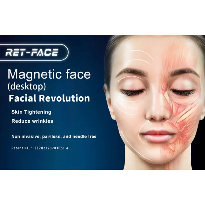 The Ret Face Lift Wrinkle Removal Muscle Building Massage Sculpt Device is a desktop machine designed to tighten skin, reduce wrinkles, and rejuvenate your complexion using advanced technology.