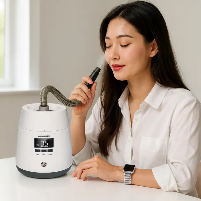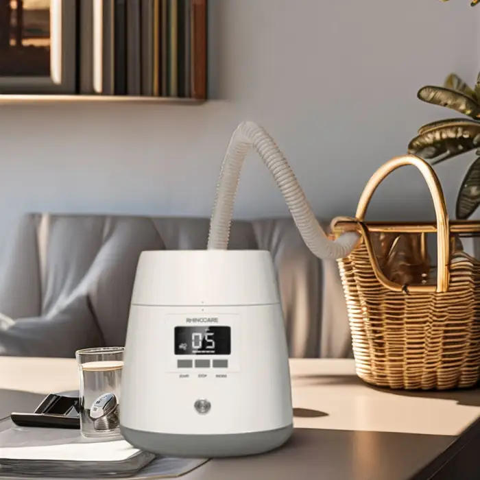 The Rhinocare device operates on an electric power source and is designed to be plugged in for use.