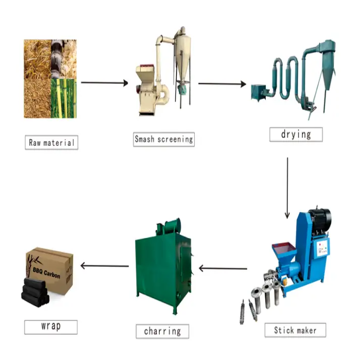 The Rice Husk Wood Stick Hookah Honeycomb Coal Briquetting Carbonization Briquette Charcoal Making Machine primarily uses sawdust as raw material, but it can also process other biomass materials.