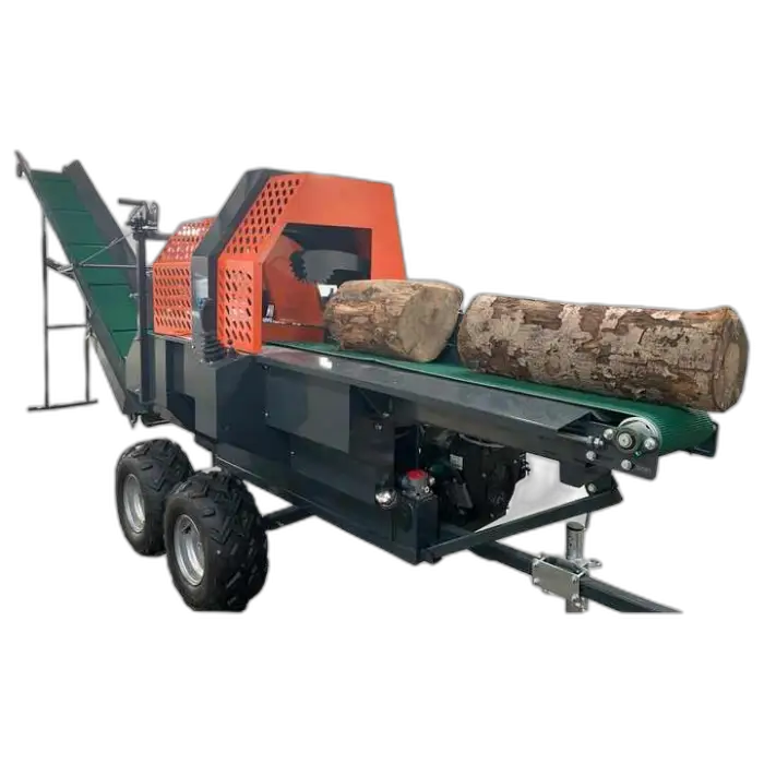 The RIMA 30T is a gasoline-powered firewood processor and log splitter with a 30-ton maximum splitting force. It combines a hydraulic feeding system, joystick control and a 3.5 m conveyor to process firewood for homeowners, small businesses, farms and forestry operations.