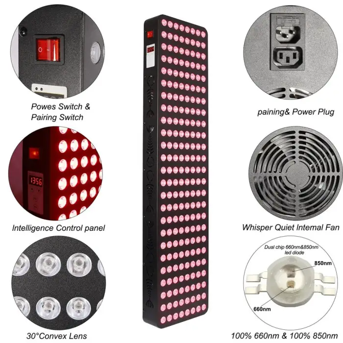 The RLTTIME Full Body LED Red Light Therapy Panel utilizes dual wavelengths of 660nm and 850nm for effective treatment.