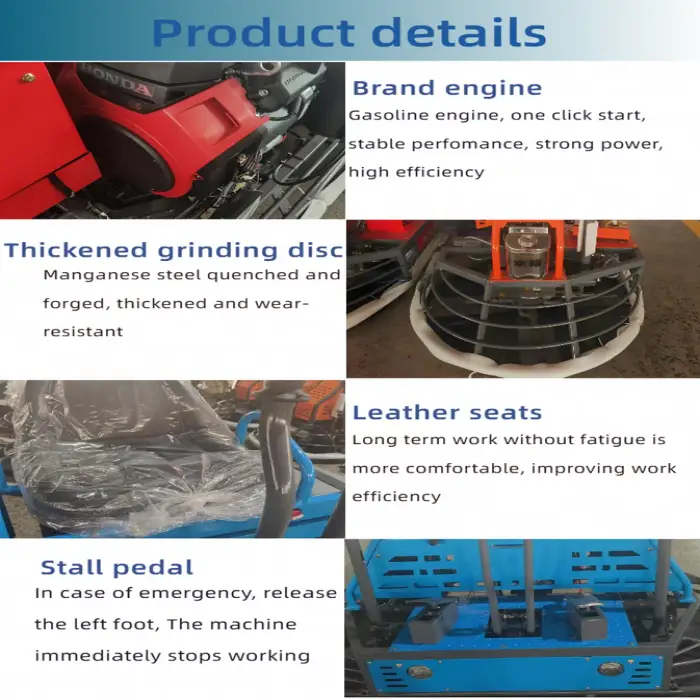 The ride-on design of the power trowel makes it easy to operate and provides a comfortable working experience, especially for large projects.
