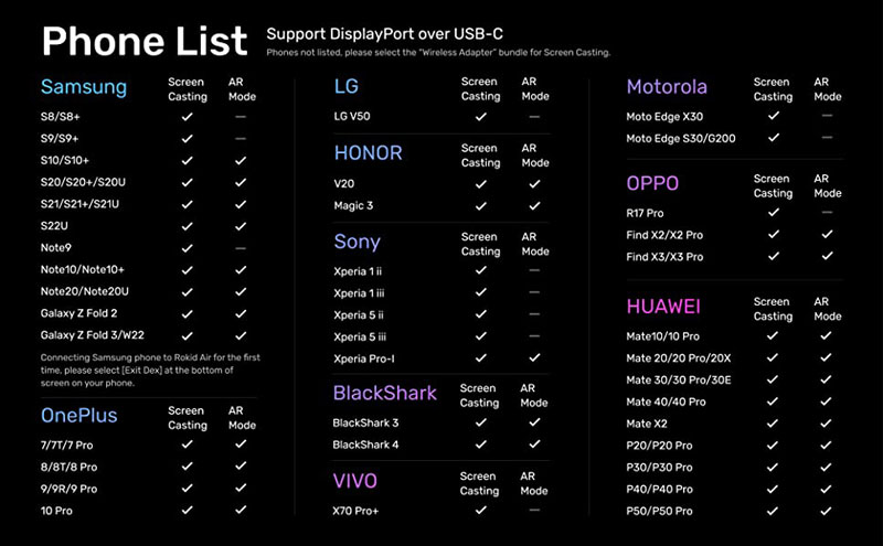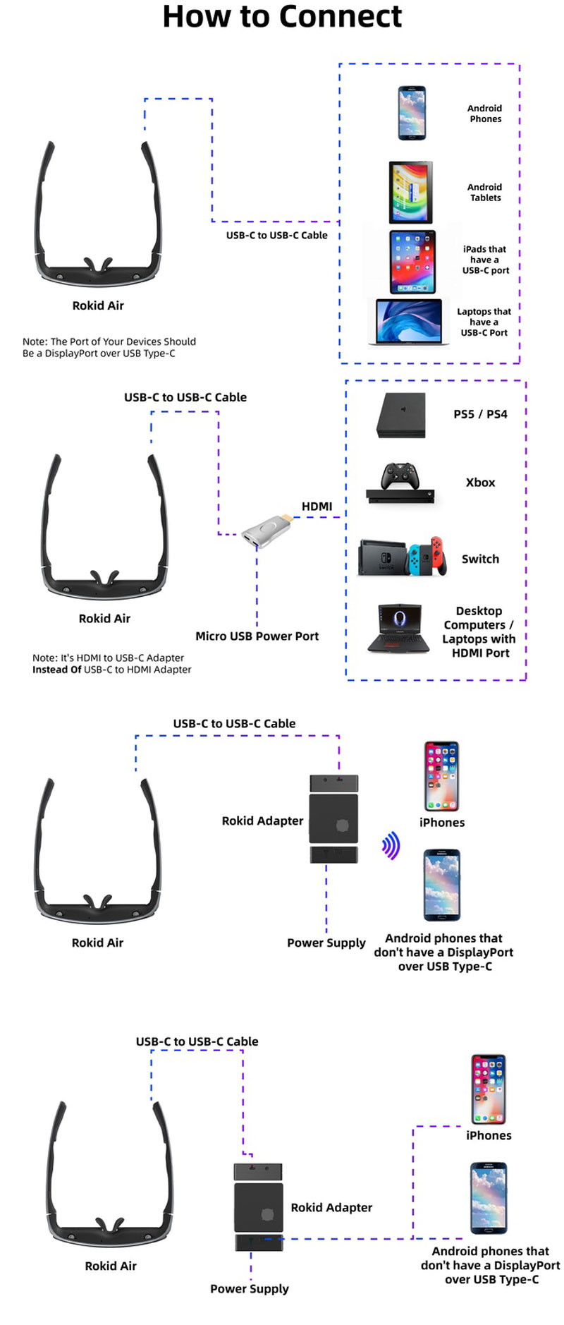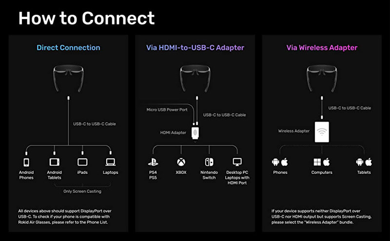 Rokid Origin Air AR Glasses are compatible with a variety of devices, including smartphones and tablets, through Bluetooth and Wi-Fi connectivity.