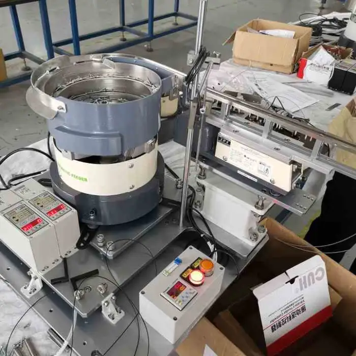 This machine features an efficient multi-track vibration feeding system and robust construction, ensuring reliability and performance in feeding auto spare parts.