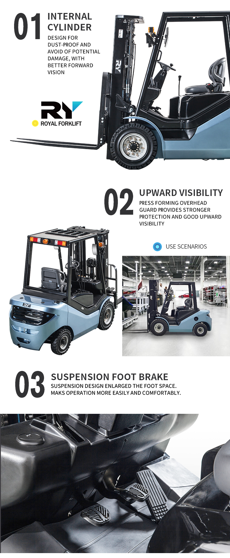 Match the forklift to your application by assessing: required load capacity (with safety margin), rated lift height and free-lift, load centre distance, aisle width and turning space, ground conditions and gradeability, fuel preference (diesel/gas/LPG), and attachments needed. If unsure, provide sample loads and workspace dimensions to your dealer for selection help.