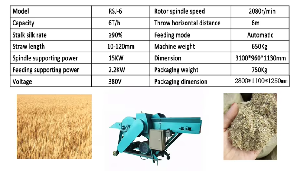 The RSJ-6 is designed to efficiently cut and process straw and other agricultural materials, including corn stalks and grass fodder.