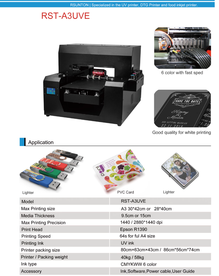 UV printers are typically capable of printing on a wide range of rigid and flexible substrates commonly used in UV printing, including plastics, glass, metal, wood, ceramics and coated materials. For specific material compatibility and surface preparation recommendations, consult RSUNTON or your dealer.