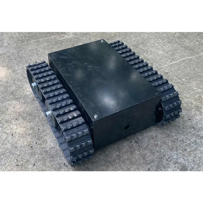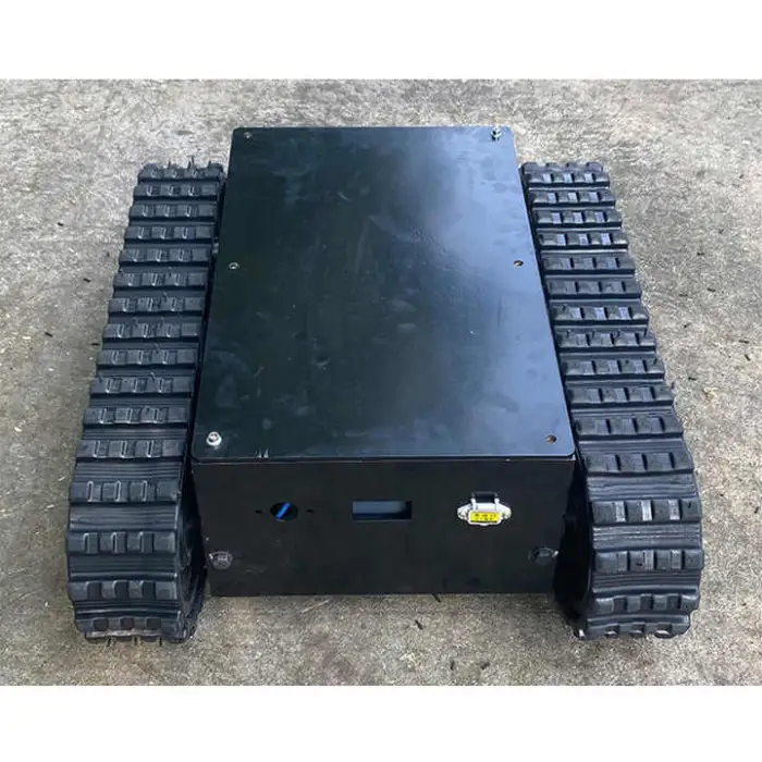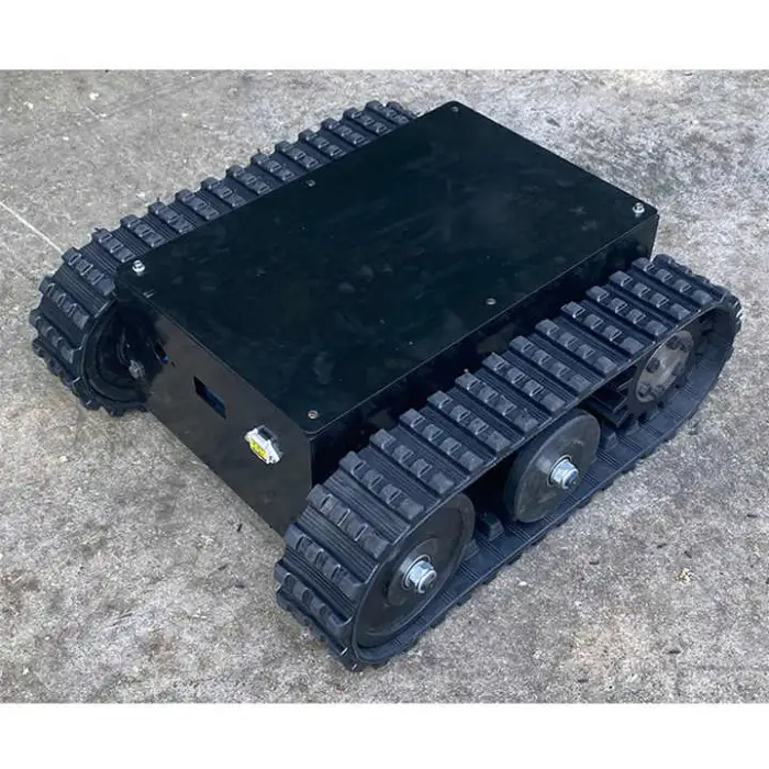 The chassis features durable rubber tracks that provide smooth movement over different surfaces.