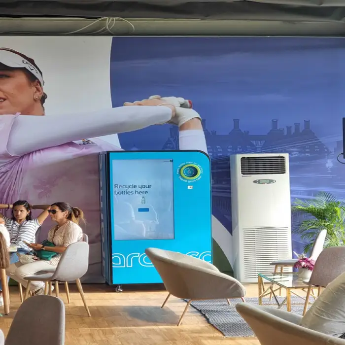 The RVM can crush and handle up to 800 plastic bottles, making it suitable for high-traffic areas and events.