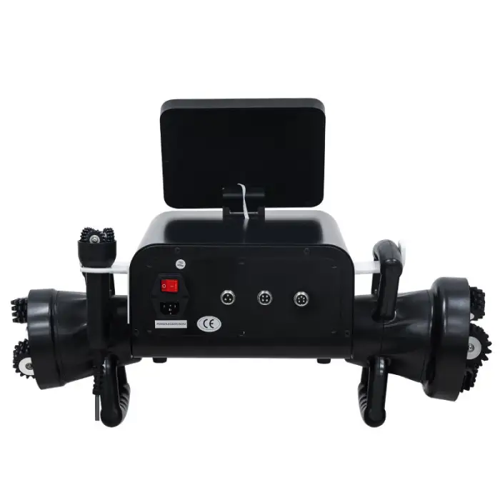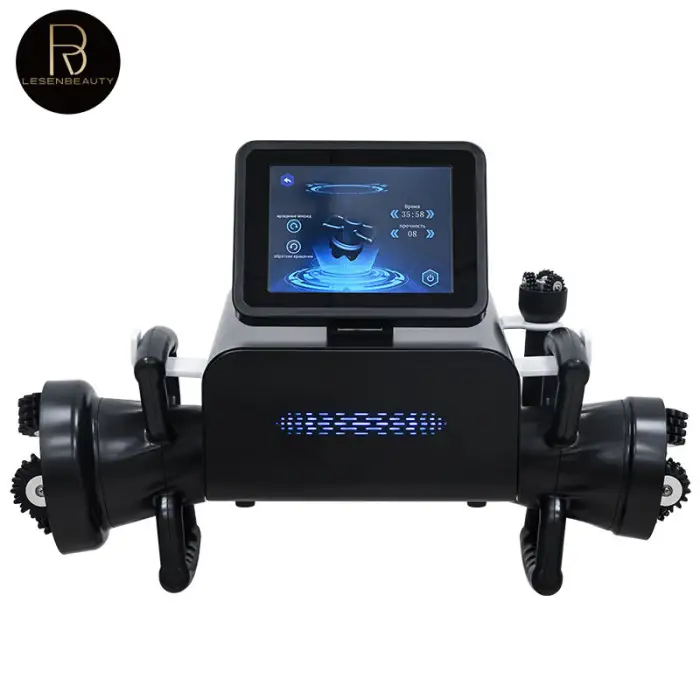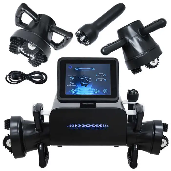 It uses EMS (Electrical Muscle Stimulation) and features a 360 Roller for effective fat burning and cellulite reduction.