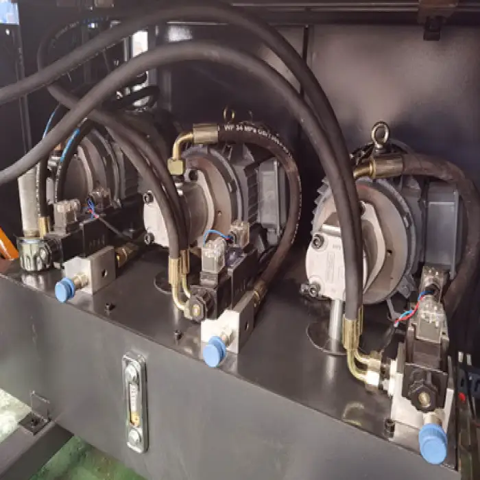 The core components include a PLC, engine, and motor.