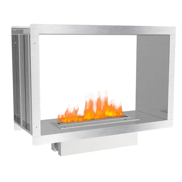 The fireplace is constructed from high-quality stainless steel or powder-coated steel for durability and resistance to wear and tear.