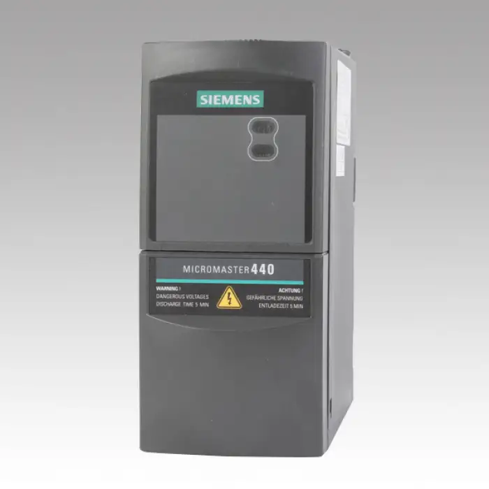 The MICROMASTER 440 is a compact three-phase variable frequency drive (VFD) from Siemens designed for industrial motor control. It provides precise speed/torque control for applications such as conveyors, pumps, fans, HVAC and material handling. The listing references models in the 6SE6440-2 series (for example 6SE6440-2UD21-1AA1 and 6SE6440-2AD27-5CA1).