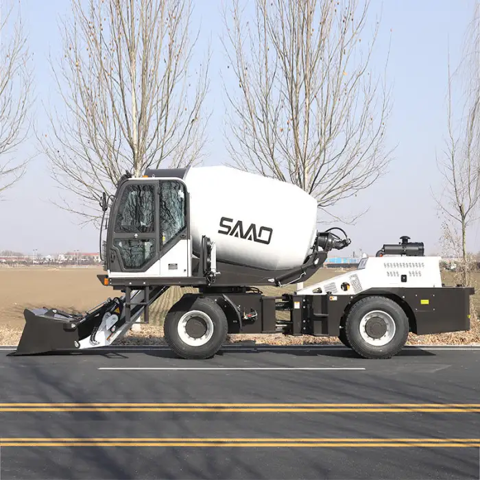 The self-loading capability allows the mixer to load materials automatically, facilitating easy material handling on-site.