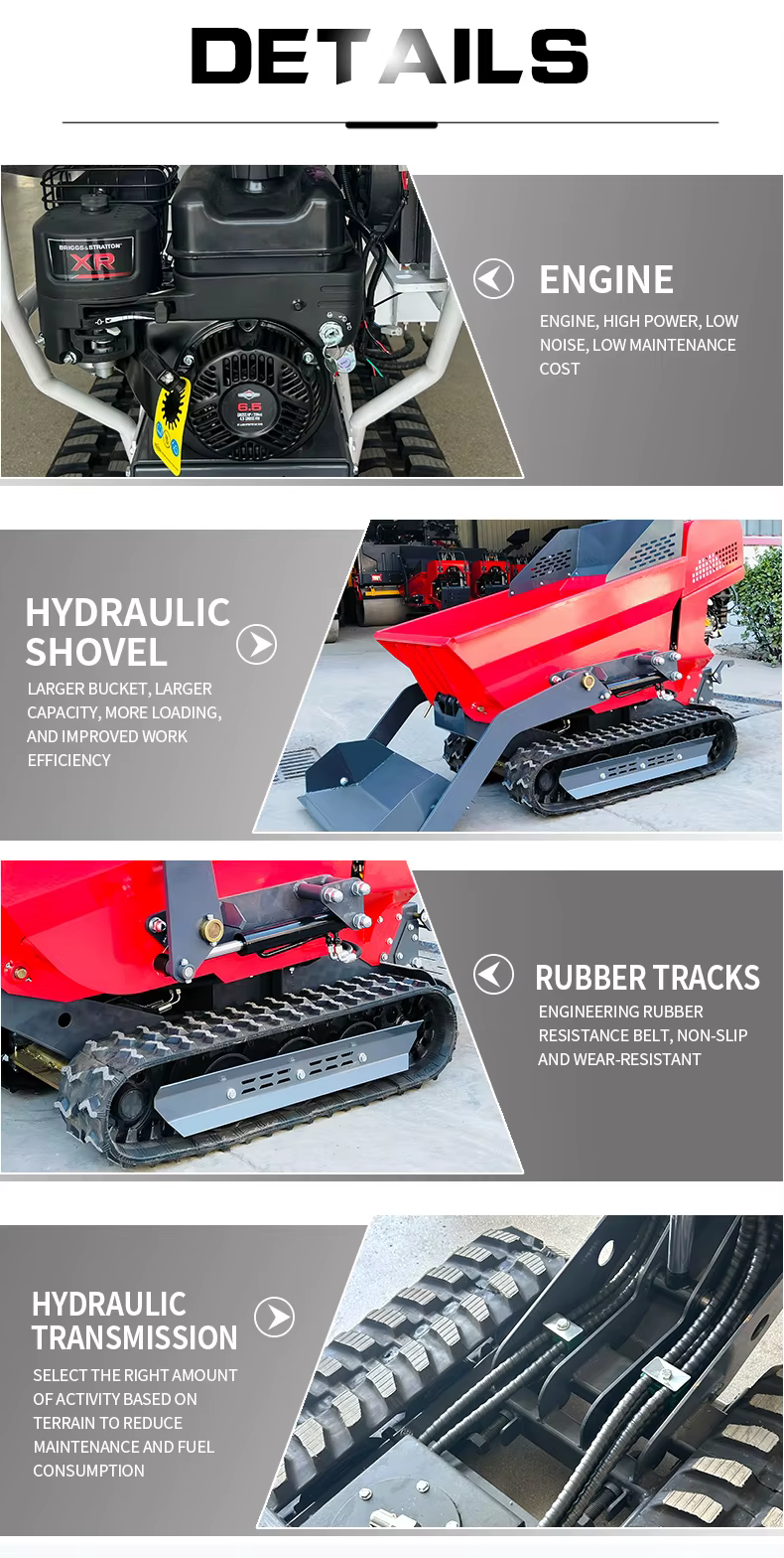 Self Loading Top Rank Garden Rubber Track 6.5hp Petrol Forestry Machinery Mini Track Crawler Dumper Ce