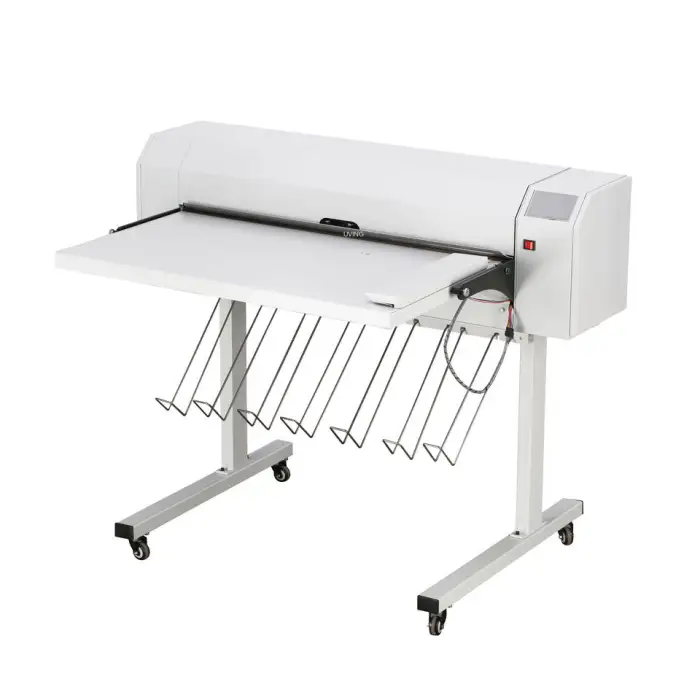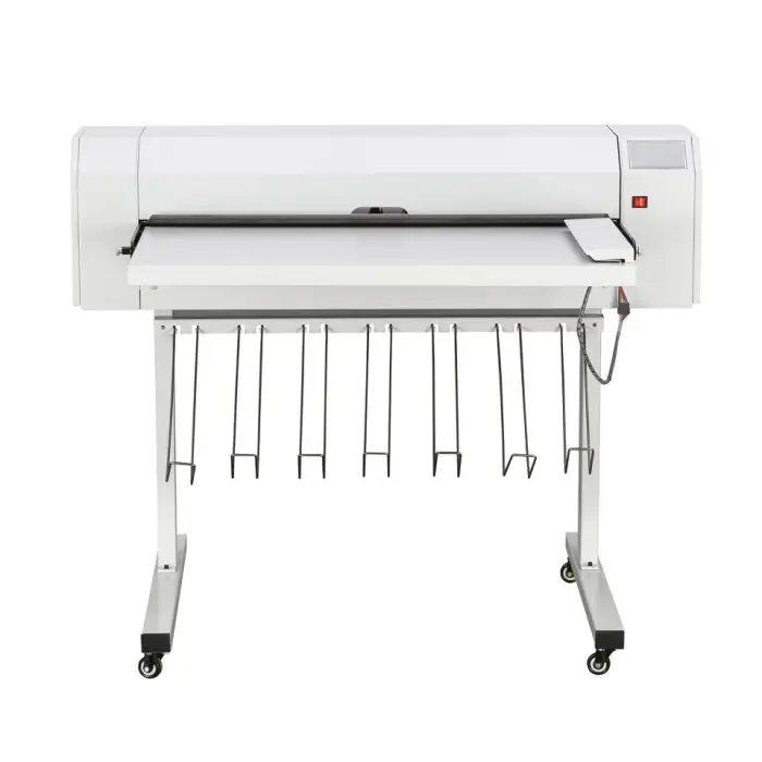The machine can accommodate A0 size paper, with a maximum feeding length of 2.4 meters.